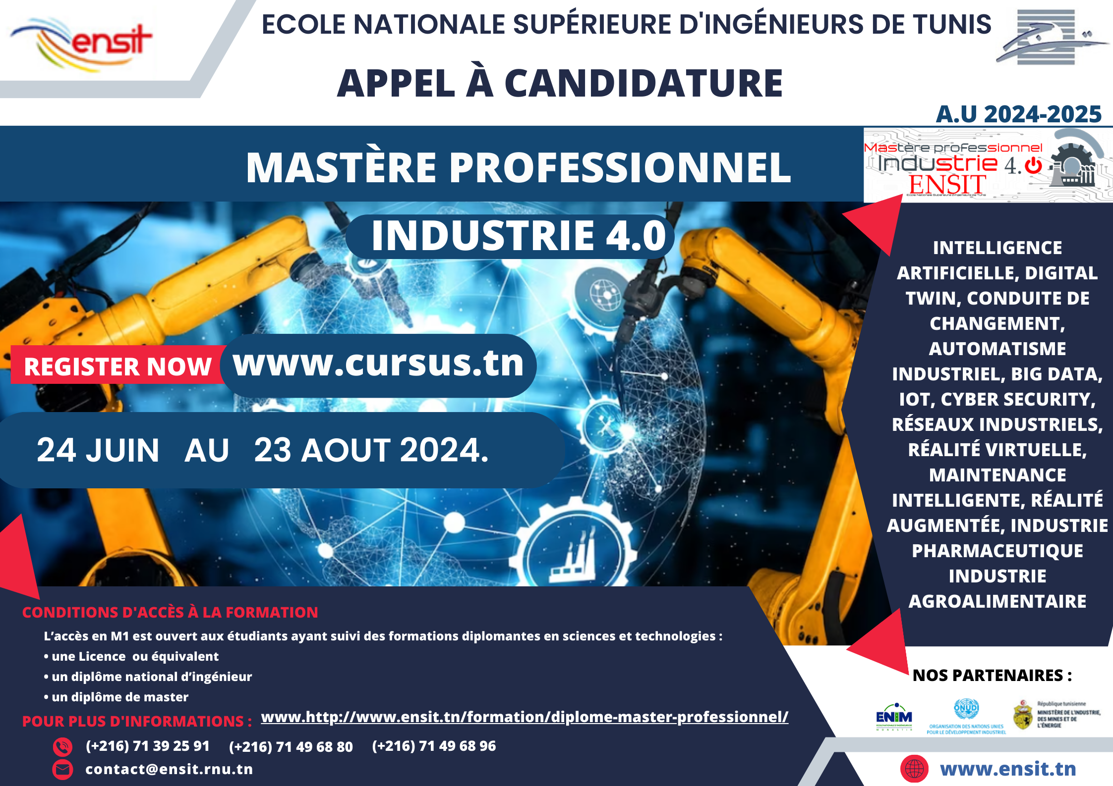 L’ENSIT avec ses partenaires lance le master professionnel en Industrie 4.0. Appel à candidatures:
