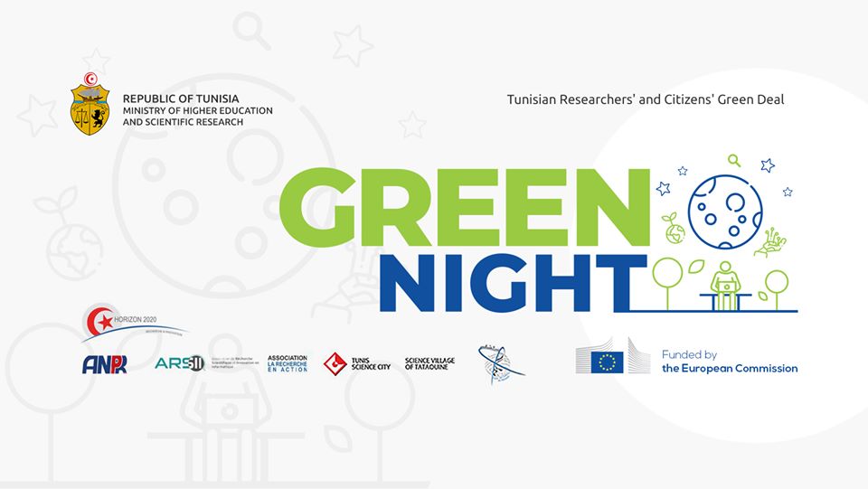 Dans le cadre de la deuxième édition de la Nuit des chercheurs en Tunisie, le Ministère de l’Enseignement Supérieur et de la Recherche Scientifique – Unité de Gestion chargée du Programme Européen de Recherche & Innovation Horizon 2020 [UGPE-H2020] organise en pré-évènement «GREEN NIGHT e-Caravane », un nouveau concept qui vise à promouvoir la Nuit des chercheurs « Tunisian Researchers’ and Citizens’ Green Deal » qui se tiendra le 27 Novembre 2020.