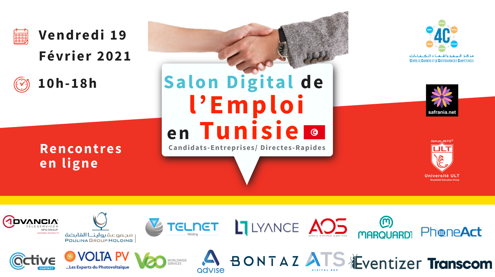 En partenariat avec les centres 4C le salon digital de l’emploi est organisé le Vendredi 19 Février 2021 de 10h-18h