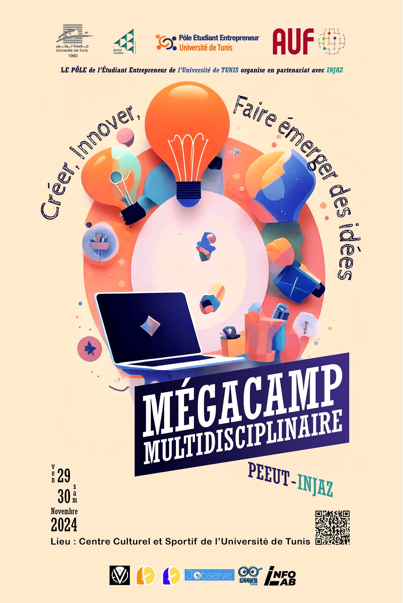 Le Méga Camp Multidisciplinaire est un Hackathon organisé pour la première fois au nouveau Centre Culturel et sportif de l’Université de Tunis, par INJAZ Tunisia et le Pôle Étudiant Entrepreneur de l’Université de Tunis PEE-Université de Tunis.