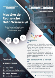 Appel à l’inscription des ingénieurs pour l’ann...Listes primaires des candidats admis aux Masters ISI – Data Science et REITA